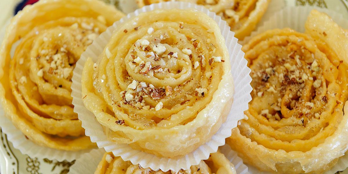 • Baklava: A sweet pastry made of thin layers of phyllo dough, filled with nuts and drenched in honey syrup.