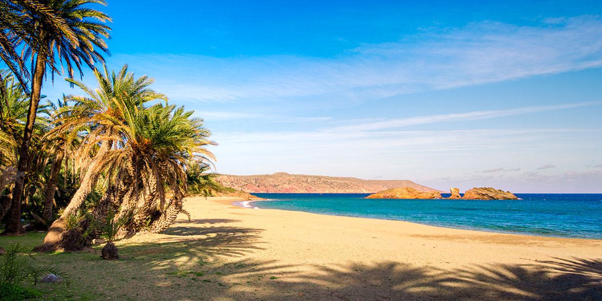 Perhaps the most iconic of Lasithi’s beaches, Vai is famous for its natural palm forest, the largest of its kind in Europe. With golden sand and clear, shallow waters, Vai has the allure of a tropical escape—but it’s unmistakably Cretan in character. According to legend, the palms grew from date stones discarded by Arab pirates centuries ago, giving the beach a mythical origin as romantic as its setting.